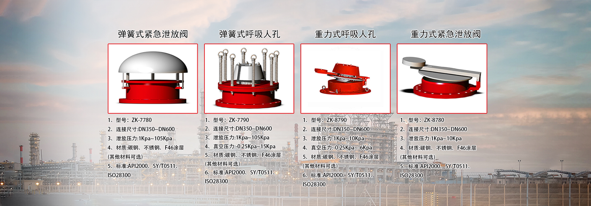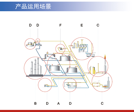 致科产品为上述工业系统提供了安全和环境的保障.1、在炼油厂和化工厂的储罐 2、在化学和制药工业处理系统 3、在气相燃烧和火炬系统 4、在造船,海洋平台和装载系统 5、在蒸汽回收系统 </p>6、设备集成元件,设备和容器